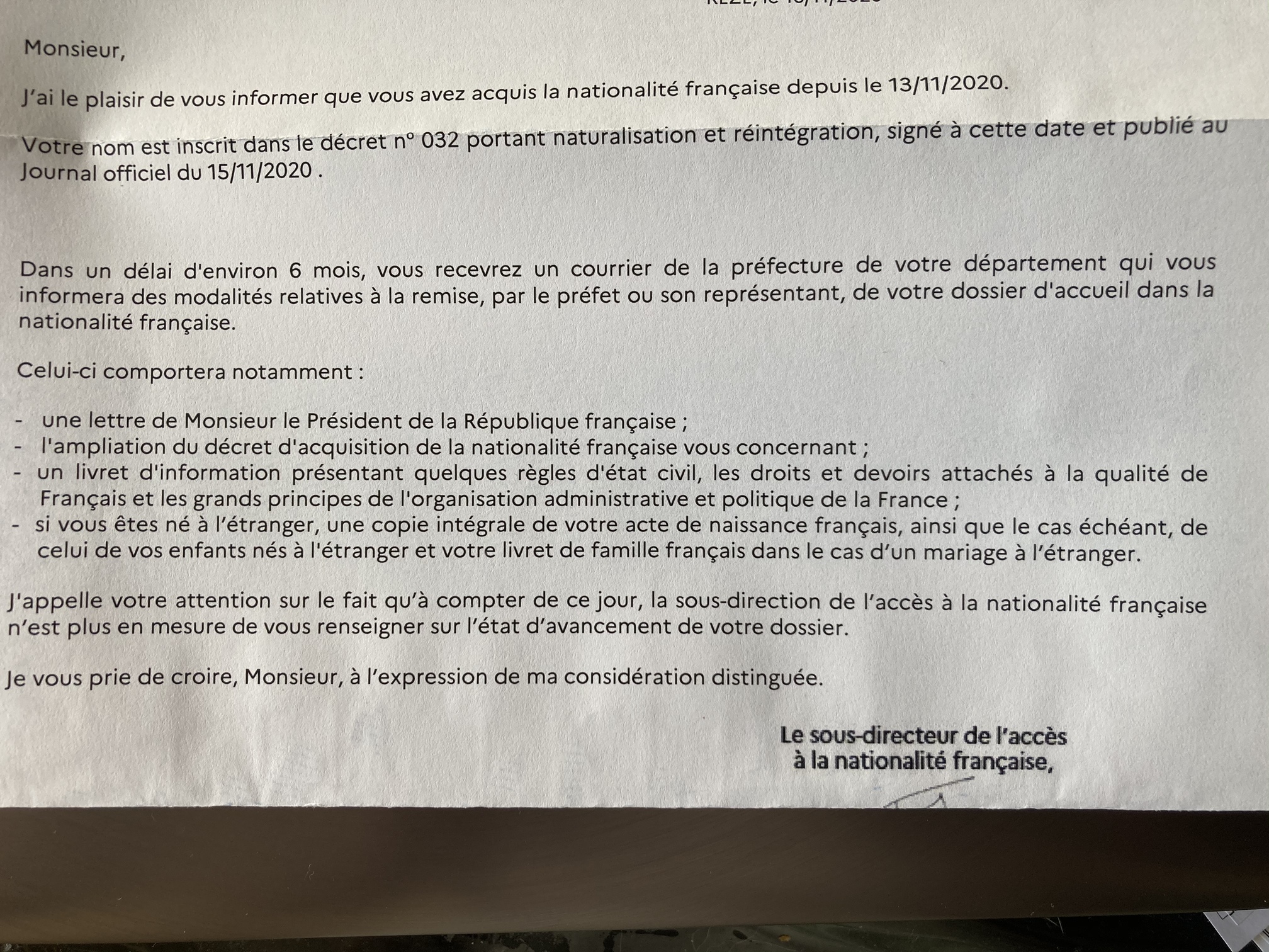 J’espère que d’ici là vous allez recevoir votre déclaration de naturalisation
