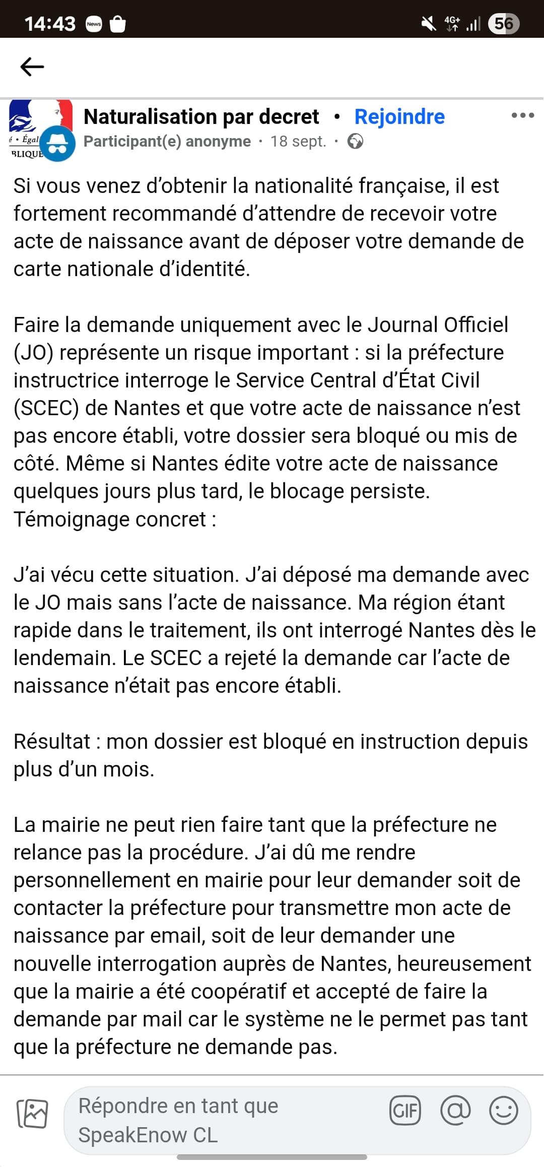 C’est noté qu il faut avoir l acte de naissance en main comme ça on est sûr que la SCEC l a finalisé