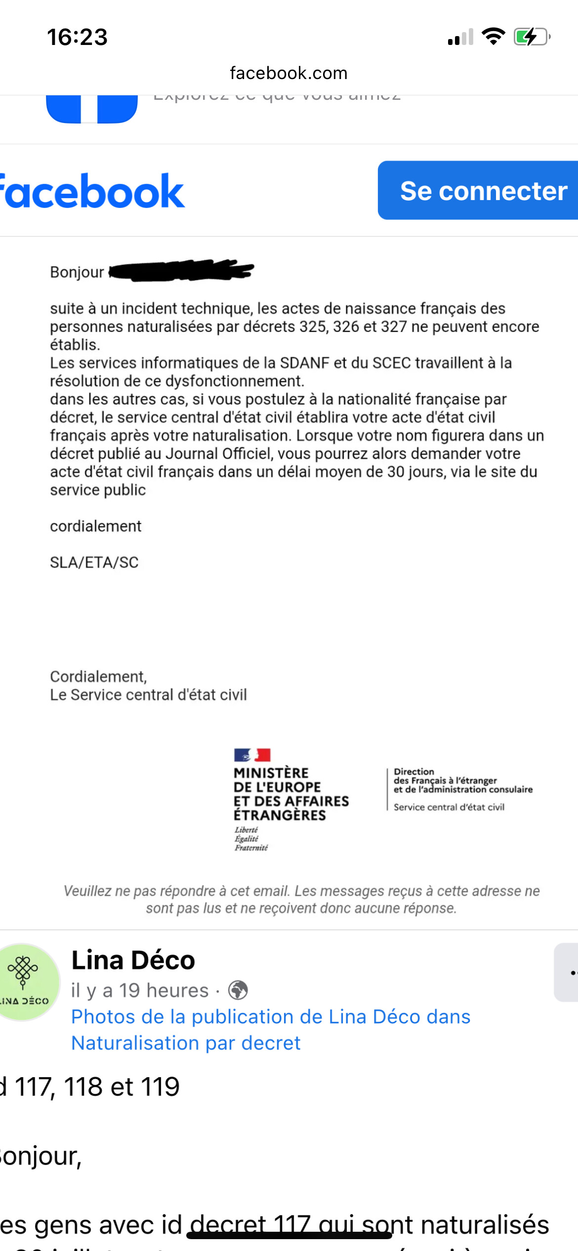 Quelqu’un du 117 a eu confirmation pour l’établissement de son Acte de Naissance ?