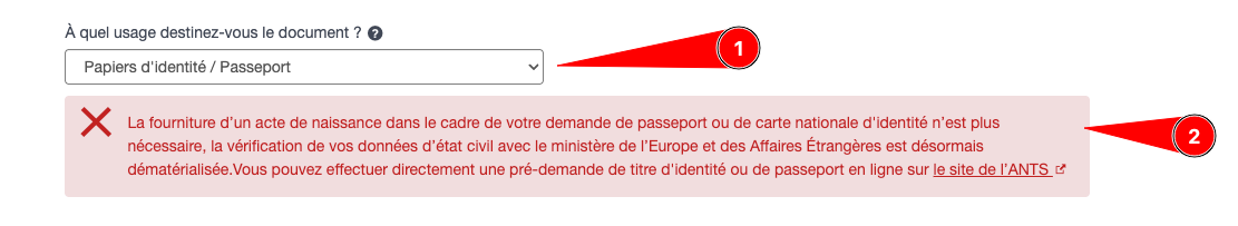 Merci pour votre réponse. Or, quand je mets le motif ‹ Papier d’identité / Passeport › , j’ai ça