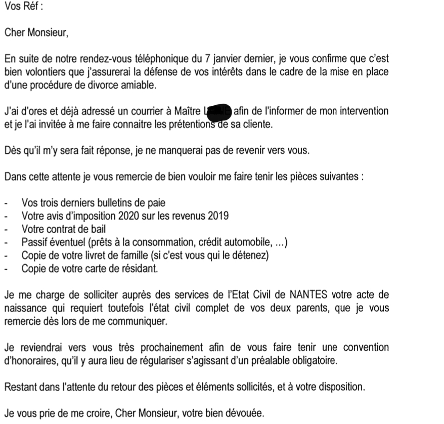 N’envoyez pas des documents de divorce ou votre ex femme dirait éventuellement des méchancetés sur vous… envoyez simplement des documents du style compte rendu d’audience…