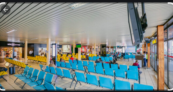 La salle d’attente est encore vide, nous espérons prendre le vol ce soir.