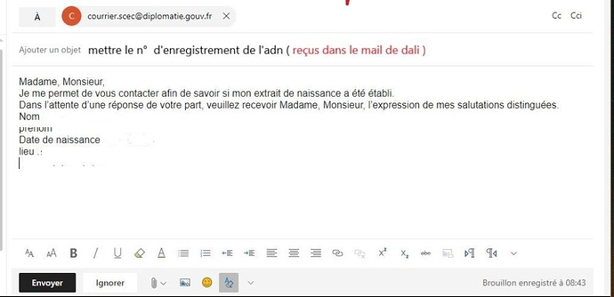 exemple : mail a envoyer a scec pour savoir si votre adn est établie après avoir fait la demande au site de dali