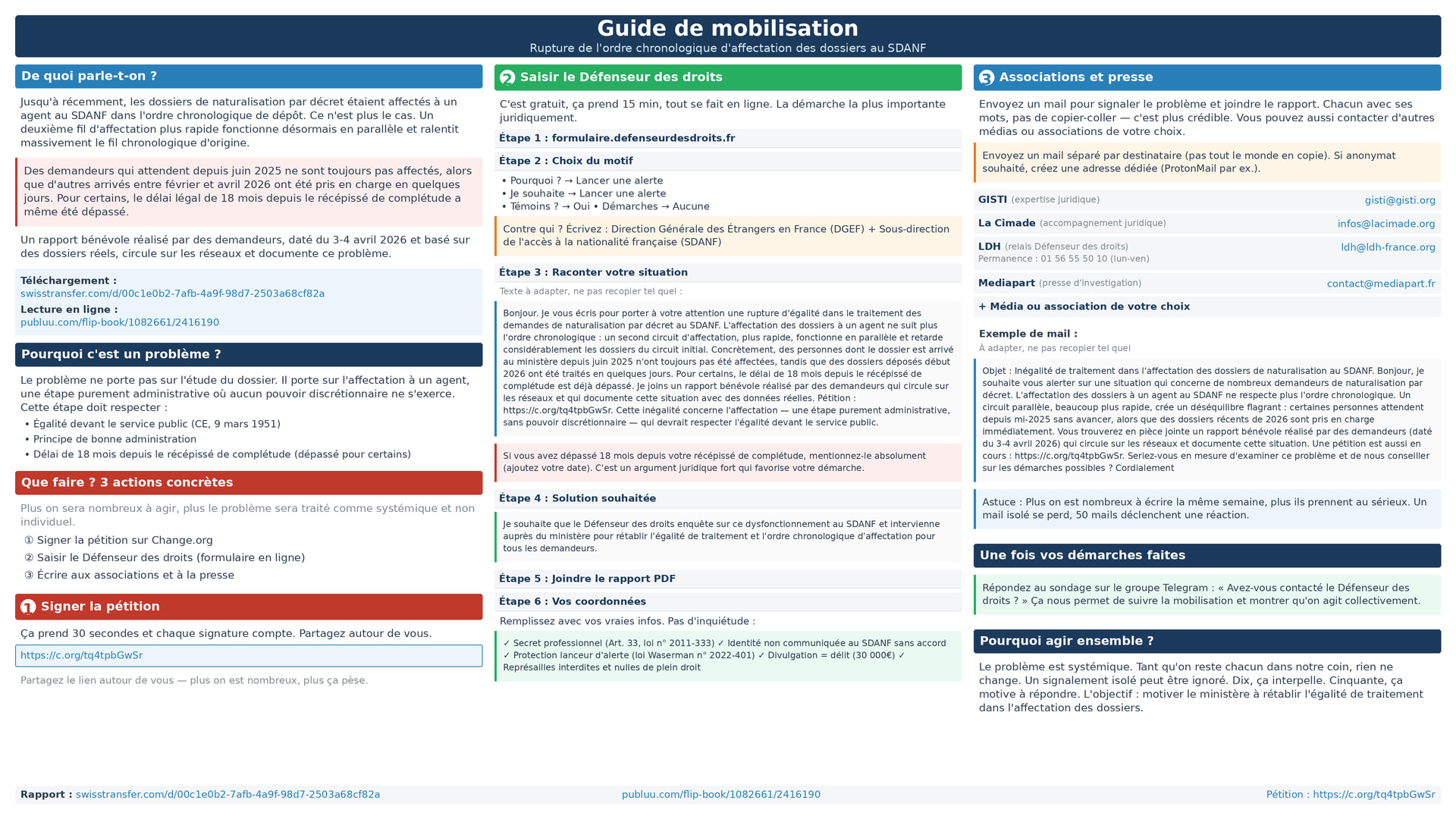 ainsi que le lien de la pétition.