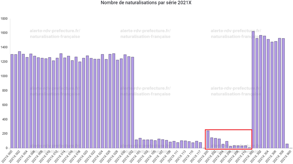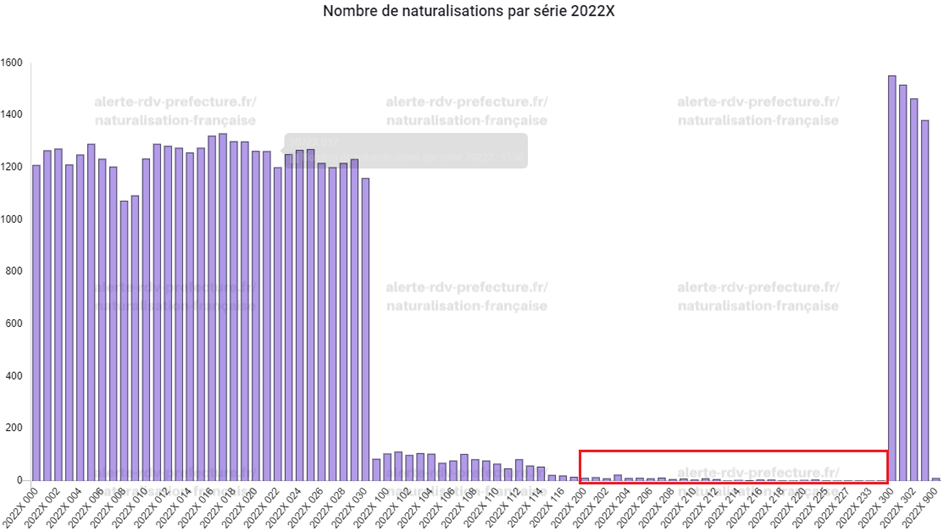 (à titre d’exemple) Nombre de naturalisés à Créteil (94) par série :