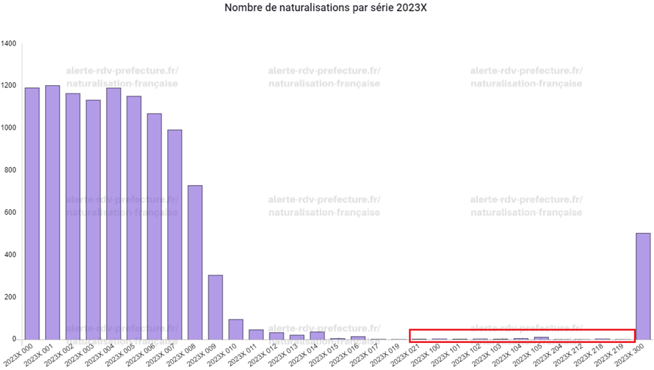 J’ai entouré les séries des demandes « en ligne ». Ils ont à peine commencé à les traiter.