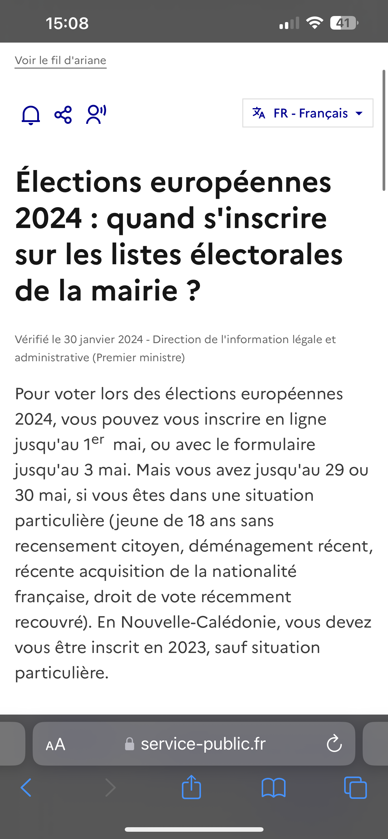 Bonjour, je suis naturalisé Français hier et je me suis rendu à la mairie pour m’inscrire sur la liste électorale pour les élections européennes. Normalement l’inscription est possible pour les nouveaux français jusqu’au 30 mai (10 jours avant l’élection)