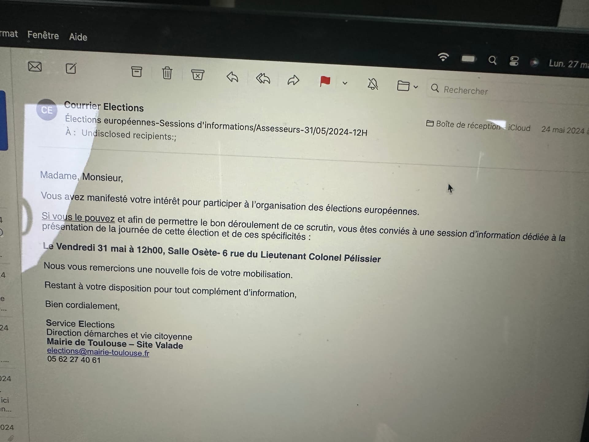 23 mai 2024 : Mail pour me signaler mon inscription sur les listes électorales