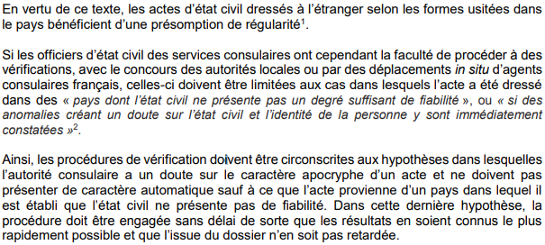 Comme je l’avais dit, SCEC ne vérifie pas systématiquement les actes auprès des autorités du pays d’origine via les consulats. Ils ne le font que si l’état civil du pays d’origine du demandeur ne présente pas un degré suffisant de fiabilité ou s’ils ont un doute.