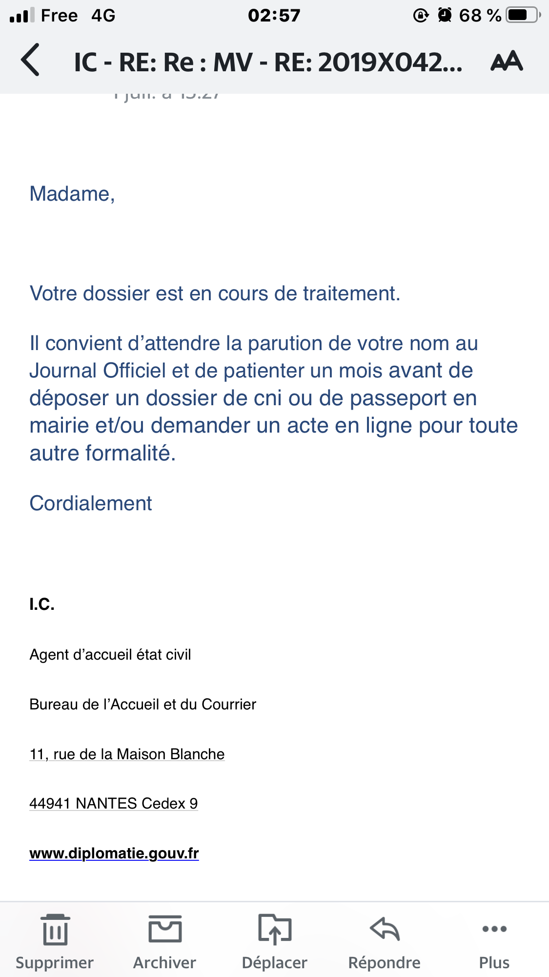 Salut, pas de décret de naturalisation ce soir. Juste un décret de rectification et de changement de nom