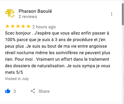 il faudrait que quelqu’un essaye de poser la question à SCEC sur les commentaires de GOOGLE concernant le standard téléphonique nous savons avec certitude qu’il sera rétabli au plus tard dans une semaine mais c’est pas sure qu’ils recommencent a donner des infos sur les dossiers de naturalisation…