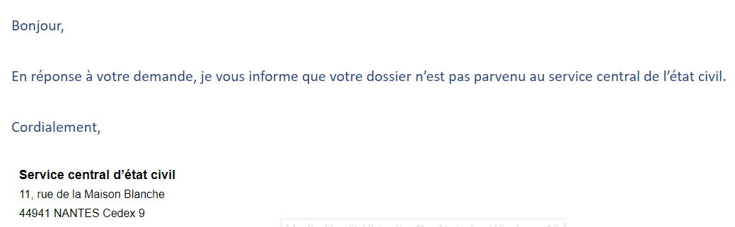 Alors, je viens à l’instant d’appeler le SCEC, ils ont reçu mon dossier le 18 Novembre. La dame que j’ai eu au téléphone m’a demandé de patienter 5 mois à partir de cette date et de les rappeler par la suite.