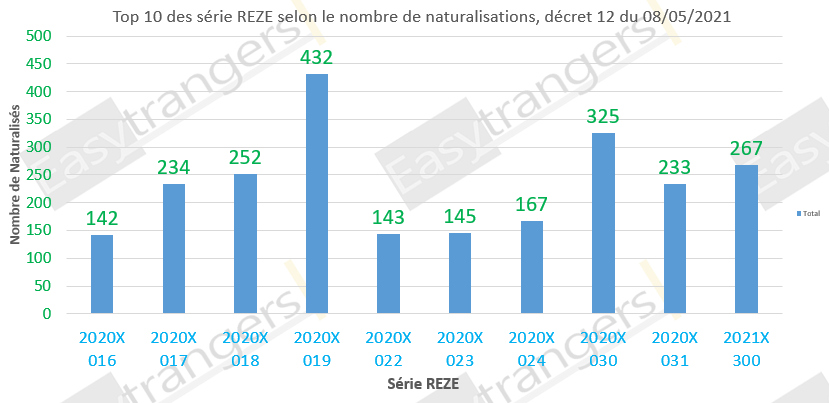 Top 10 des série REZE selon le nombre de naturalisations, décret 12 du 08/05/2021: