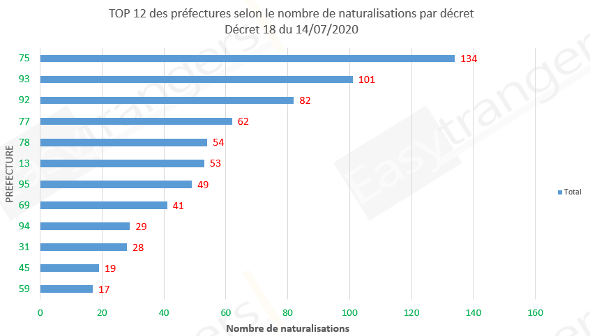 La préfecture de Paris garde la tête du classement avec 134 naturalisations, suivie par la préfecture de Bobigny (93) avec 101 personnes naturalisées. La préfecture de Nanterre à quant à elle 82 naturalisations.
