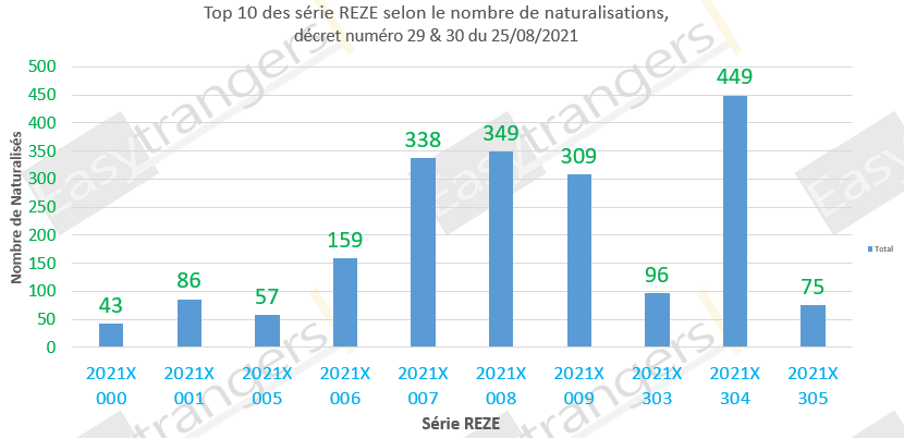 Top 10 des série REZE selon le nombre de naturalisations, décrets 29 et 30 du 25/08/2021: