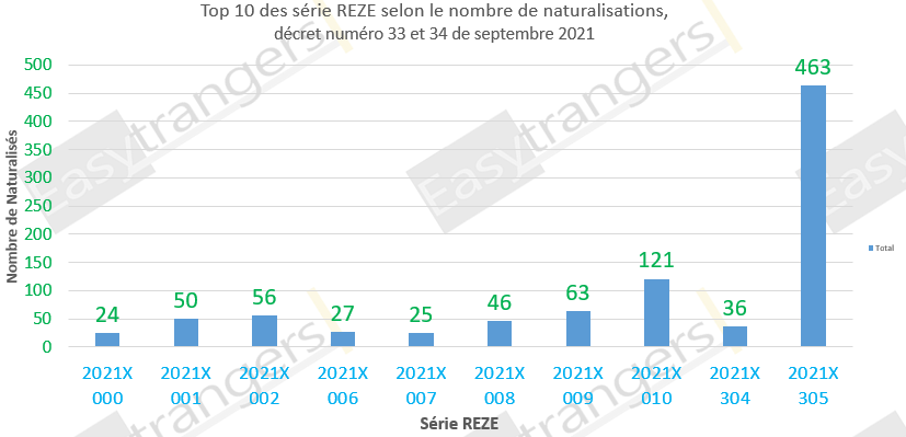 Top 10 des série REZE selon le nombre de naturalisations, décrets 33 et 34 du 29-30/09/2021: