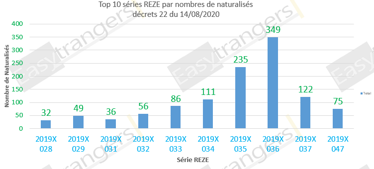 Top 10 des série REZE selon le nombre de naturalisations, décret 20 du 14/08/2020: