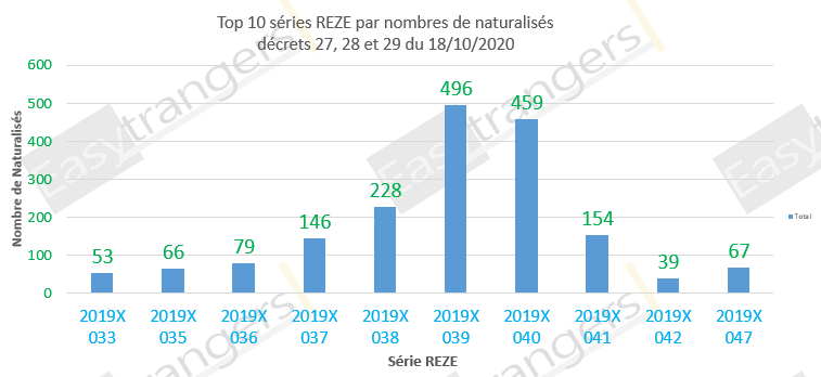Top 10 des série REZE selon le nombre de naturalisations, décrets 27, 28 et 29 du 18/10/2020: