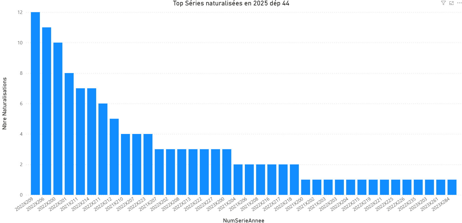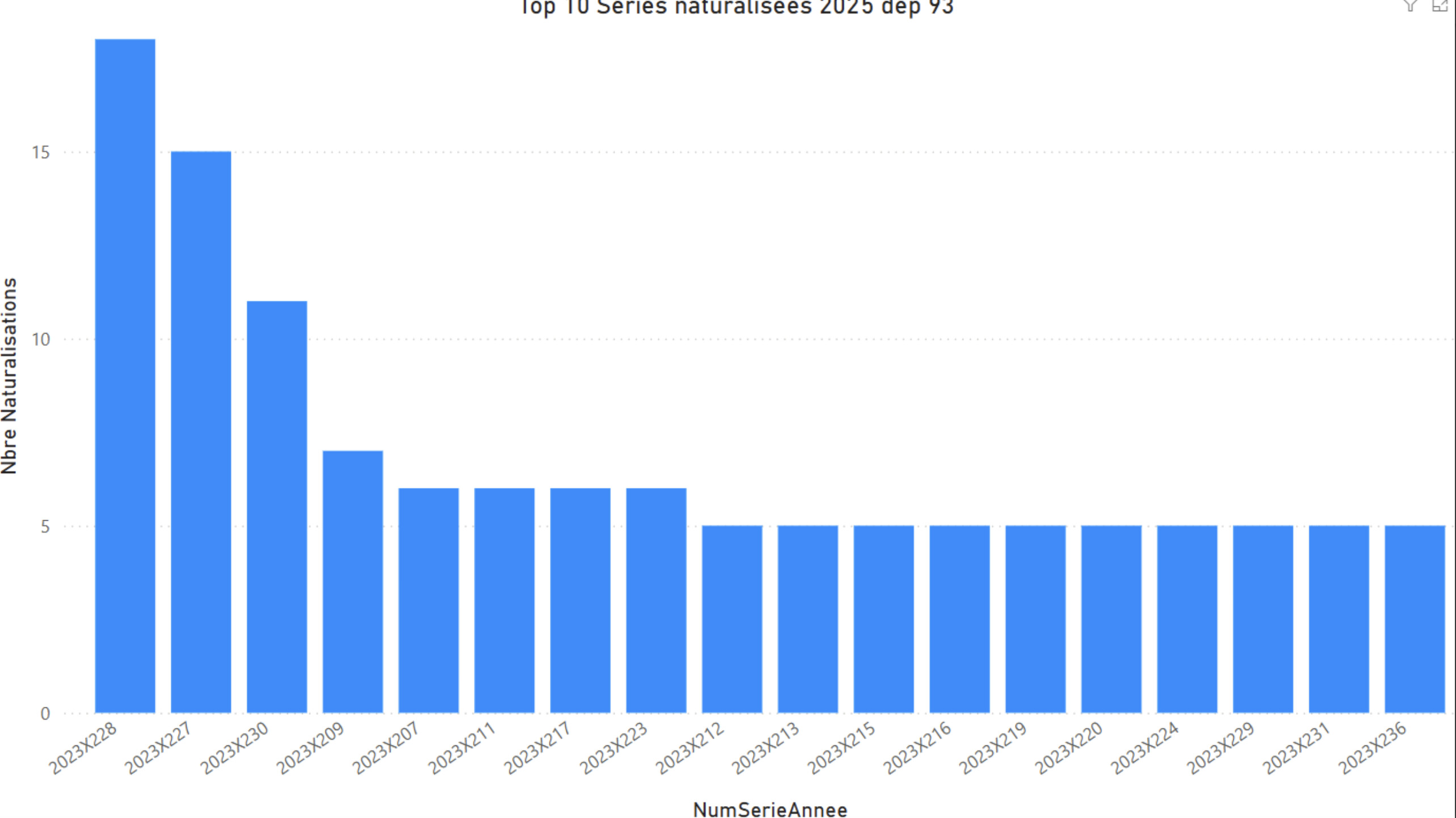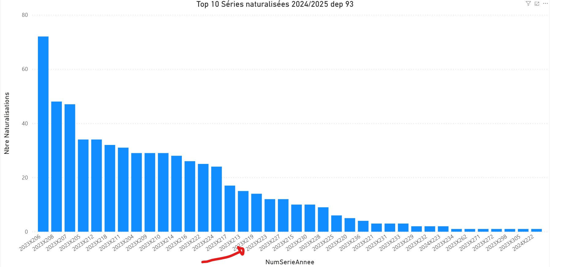 Merci pour votre retour, je vais regarder pour la préfecture de Toulouse, mais les naturalisations à la préfecture de Toulouse ne suivent pas vraiment une logique claire, dans les séries les plus naturalisées de 2025, on trouve du 2023 et du 2021 et étonnement pas de 2022, je ne sais pas ce qui s’est passé en 2022. Je vais regarder de nouveau de mon côté peut être que j’ai commis une erreur.