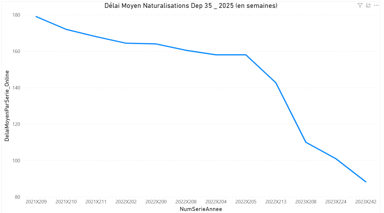 Ce n’est pas vraiment évident de tirer des conclusions pour les séries traitées actuellement à la préfecture de Rennes, il y a du 2021, 2022 et 2023 avec un faible nombre de naturalisation pour chaque série.